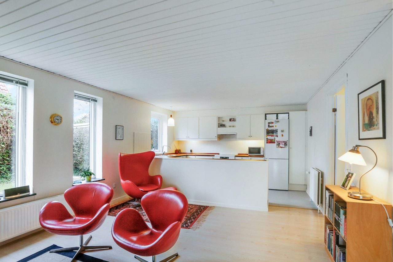 elementkøkken, der smelter sammen med en dejlige opholdsstue. Fra opholdsstuen er der direkte