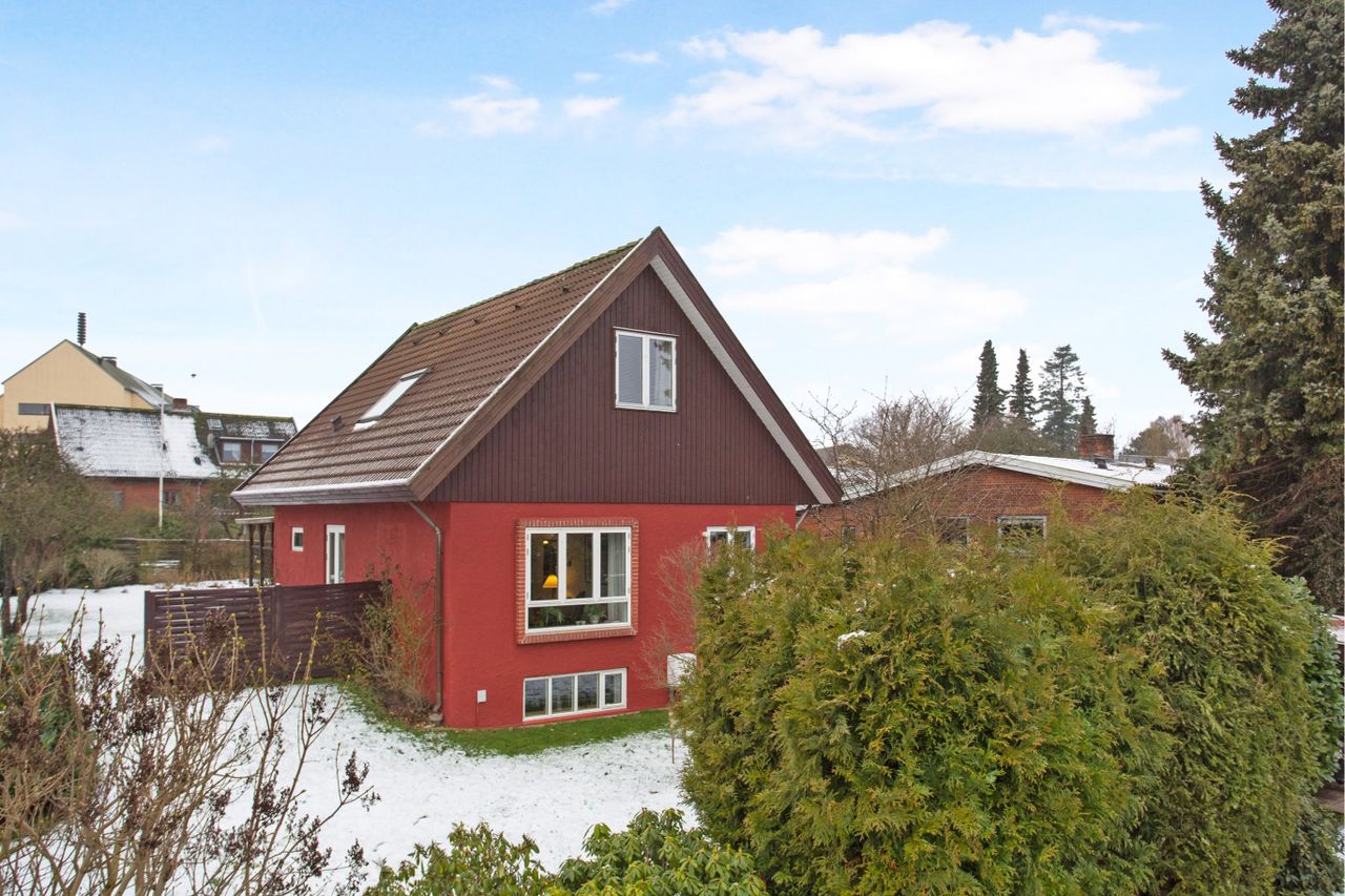 Villaen charmerer straks med sin rødpudsede facade og hvide vinduesrammer, der står i fin kontrast til