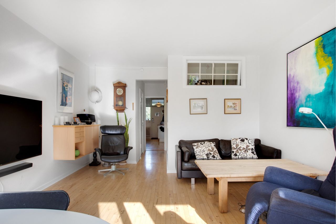 opholdsstuen er smart indrettet/etableret - som et smart ekstra rum med oplukkelig vindue - Dette rum er