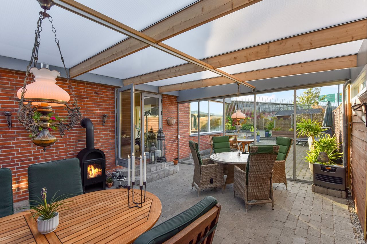 lukket udestue, hvor en af boligens to brændeovne er placeret, så I kan nyde den friske luft i