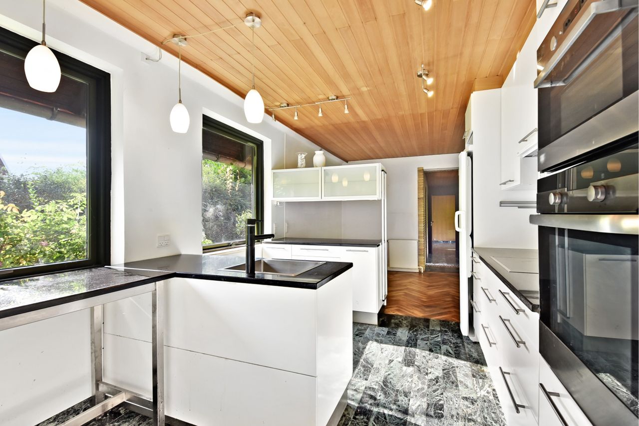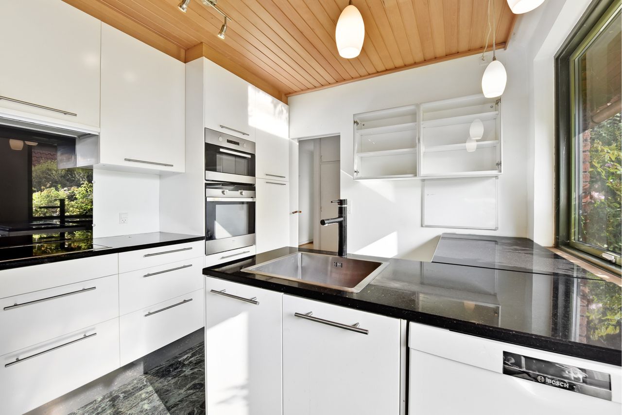 en indretning, der har det hele. Køkkenet er et tydeligt eksempel på, hvad en modernisering af denne villa