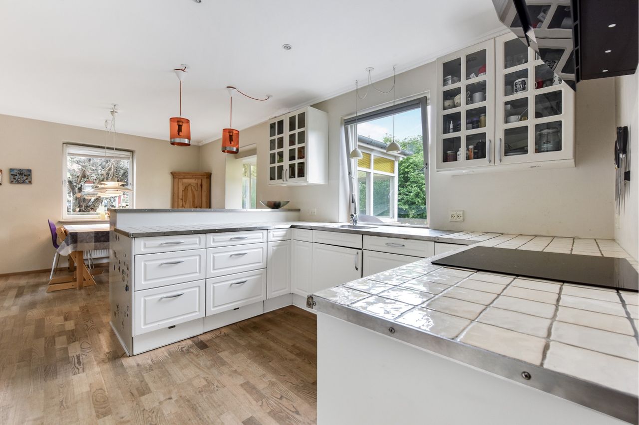 I en rummelig bolig med plads til alle, og hvor planløsningen tilgodeser diverse behov.