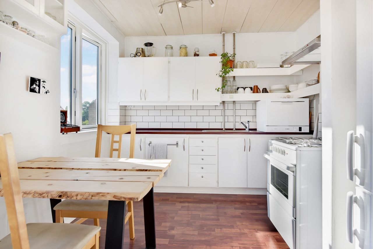 lyst spisekøkken, hvor der er god plads til at byde familien og vennerne på middag, et særligt stort