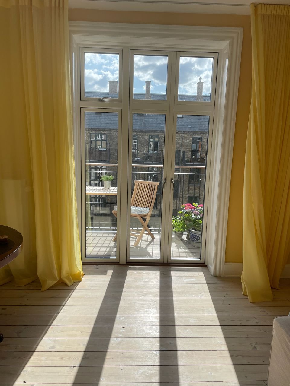 bruseniche, en helt unik opholdsstue med den skønneste atmosfære - Flotte plankegulve - ny stor dobbeltdør med direkte udgang til den nye skønne og solrige altan - Endelig er der en direkte åben forbindelse mellem