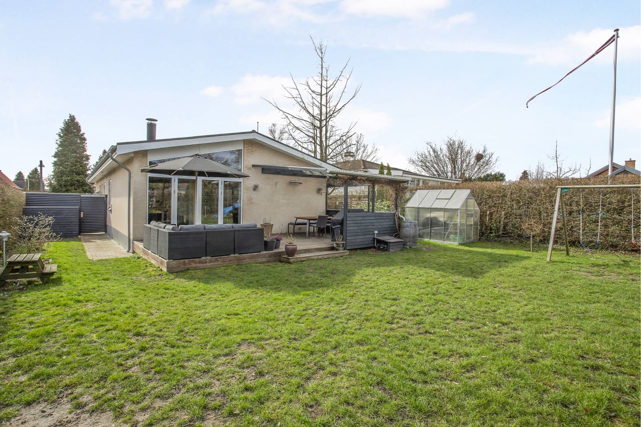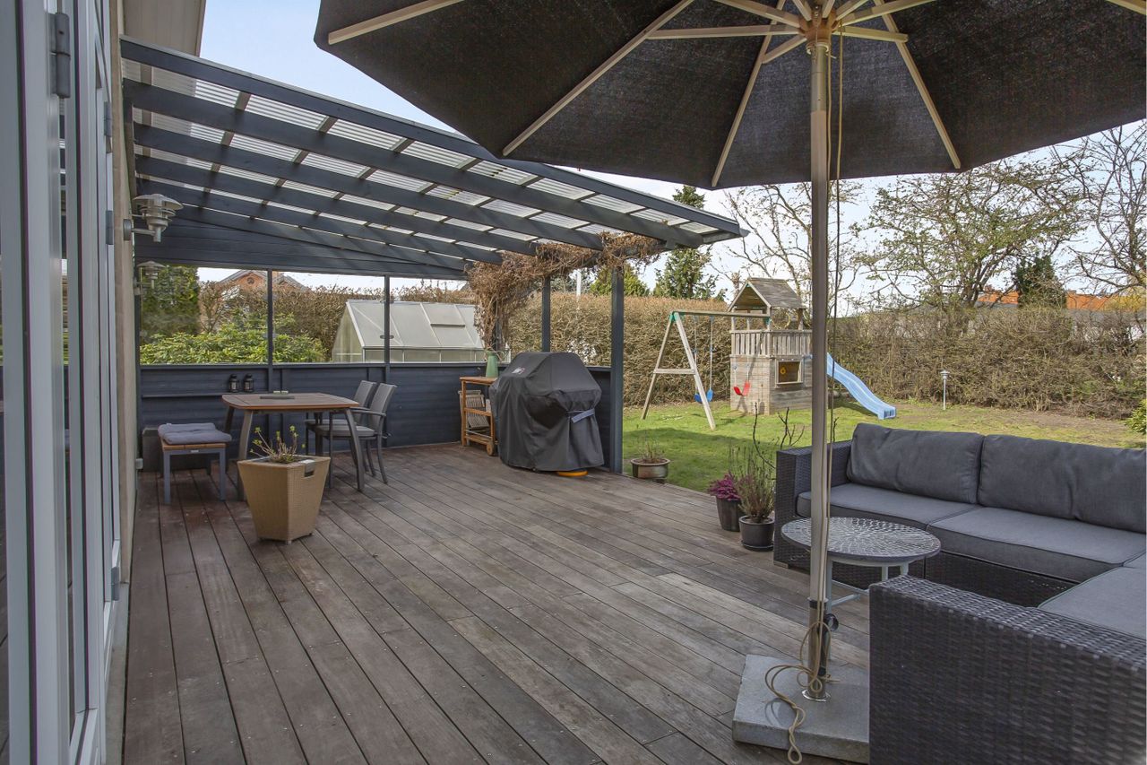 delvist overdækket træterrasse mod nordvest er det svært ikke at lade sig begejstre. I baghaven finder I