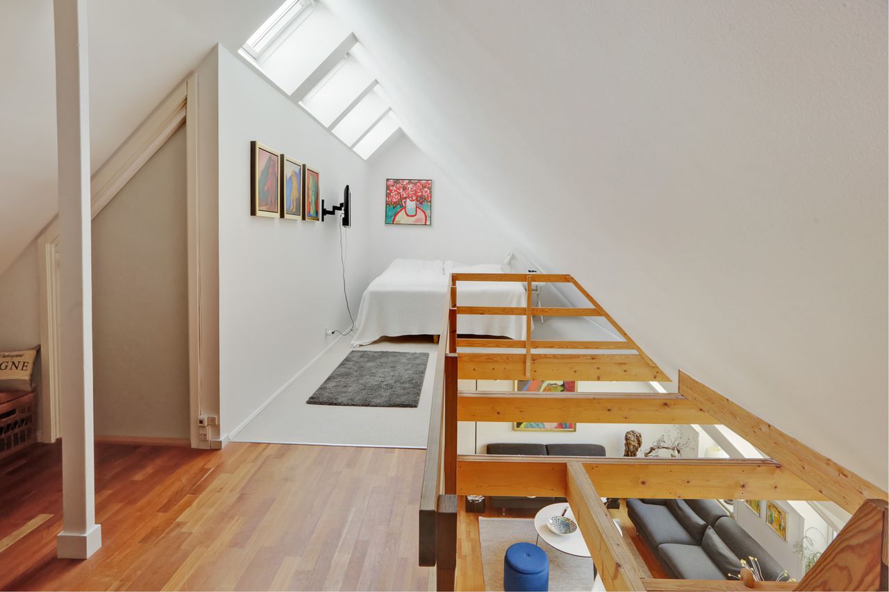 ovenlysvinduer og opbevaringsrum, der snildt kan benyttes som værelse eller hyggekrog, giver