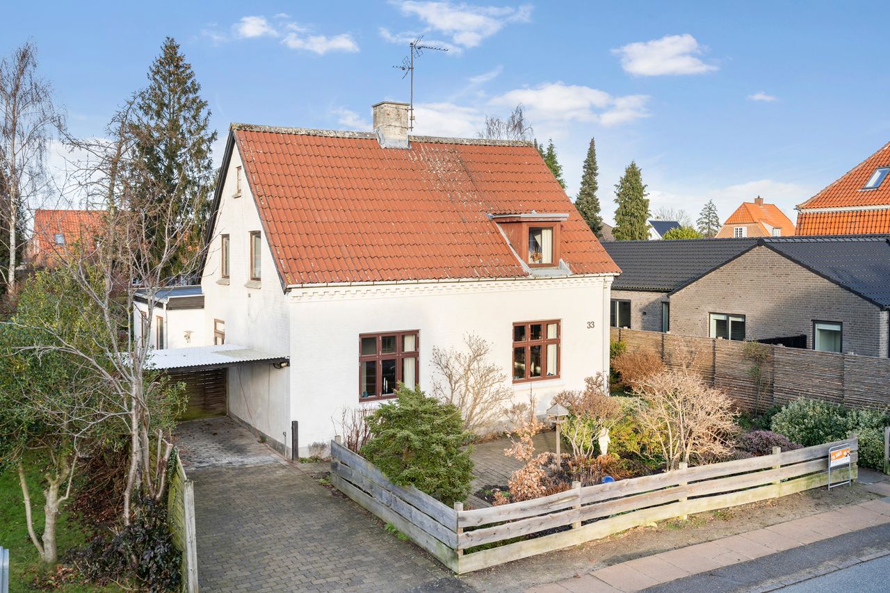 Det er også fra den lille gang ved køkkenet, man kommer ud til en atmosfærefyldt udestue og derfra videre til værkstedet, hvor I har mulighed for at være kreative med jeres hobbies, og ordne praktiske gøremål. I får desuden opbevaringsmuligheder på loftet. Der er naturligvis mulighed for at justere på planløsningen i forbindelse med modernisering af huset, samtidig med at I kan vælge at bibeholde nogle af de oprindelige elementer, så boligen kan videreføres i jeres version af en klassisk-moderne familiebolig.