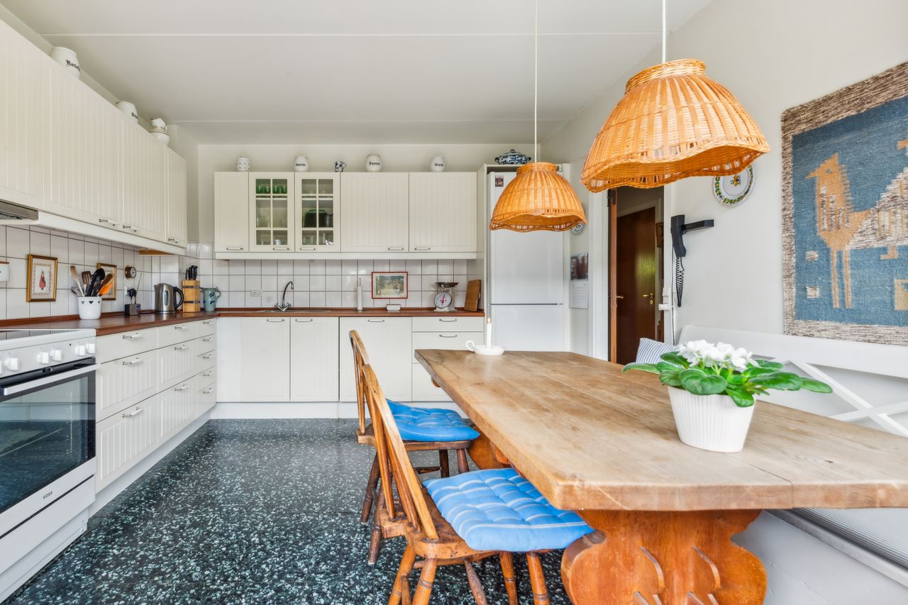 Indenfor får I nogle gode kvadratmeter at boltre jer på, og huset egner sig særligt godt til jer med børn, for på førstesalen er der tre værelser, hvoraf det ene sagtens kan deles i to. Et brusebadeværelse afslutter førstesalen, der står så flot pakket ind i træ i en dejlig, varm tone, mens tagvinduer sikrer mest muligt lys.