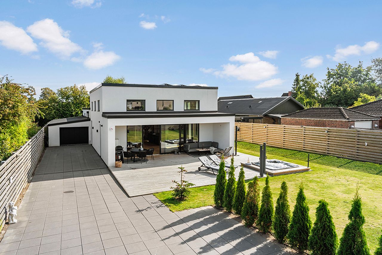 Allerede udefra imponerer villaen med sit funkisinspirerede udtryk, og indenfor fortsætter den gode stil, der er gennemgående i alle rum. Materialevalget er i en liga for sig, og sammen med den gennemtænkte planløsning giver det jer en bolig i klasse A.