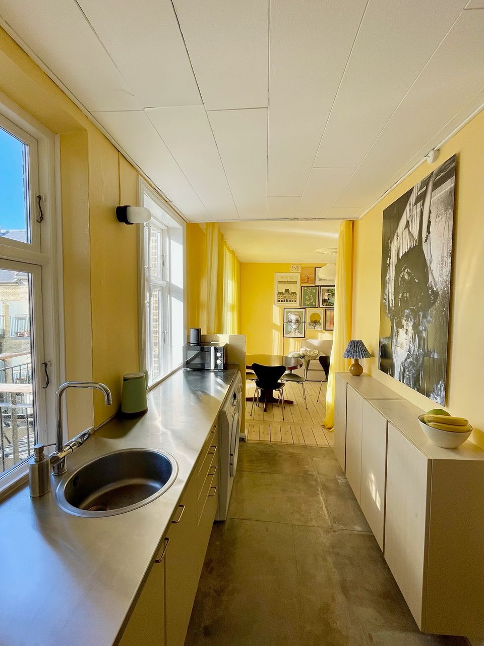 opholdsstuen og køkkenet, hvor du finder god skabsplads og en skøn udsigt. Dette er 100% lejligheden som skal opleves.